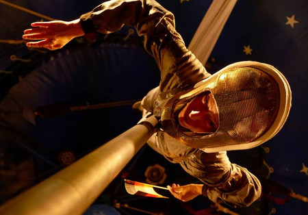 - 1Foto © nics_stage. Dokumentarisches Theater mit Artistik am Chinese Pole, Punkrock am Schlagzeug und Erinnerungen an die Wendezeit.