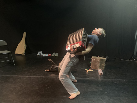 - 1Foto © Franziska Cazanave. Eine Tanzperformance für 5 Luftbetten, 3 Performer:innen, 8,5 Melodicas,